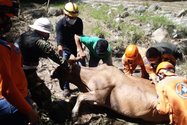 Contenido multimedia principal Se necesita un helicoptero para rescatar una vaca embarazada en Ibagué Cinco días completa el animal a orillas del río Combeima, luego de rodar cerca de 800 metros por un barranco. Aunque los organismos de socorro y la co...
