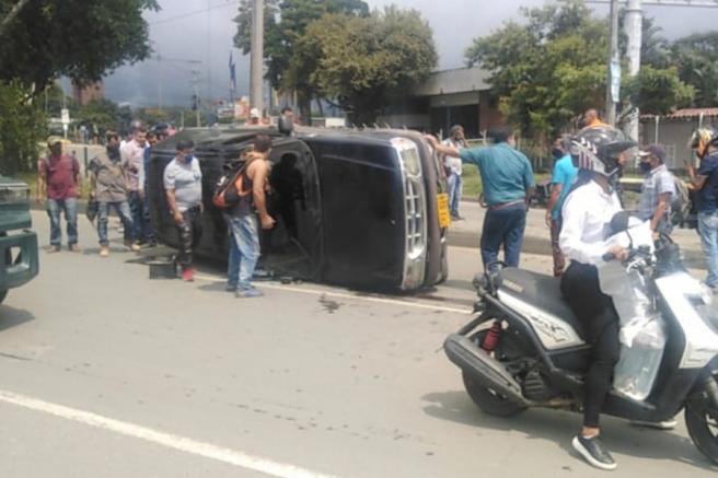 Contenido multimedia principal Se volcó hace pocos minutos una camioneta cerca a la glorieta de Mirolindo En el evento accidental afortunadamente no hubo personas heridas, pero si millonarios daños materiales en el automotor. Agentes azules con la ayuda de...