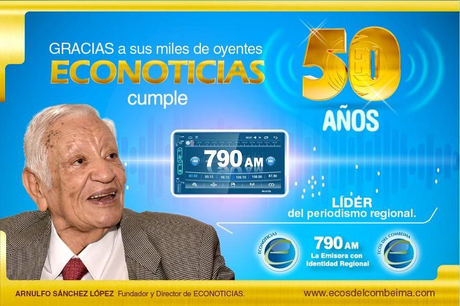 El próximo martes 1 de septiembre Econoticias cumple 50 años al servicio de la comunidad y para celebrarlos la Emisora con Identidad Regional, ahora más nacional, tendrá un día de programación especial, por lo cual buscamos que nuestros oyentes y seguidores sean partícipes. (Econoticias cumple 50 años trabajando por una ciudad más productiva e innovadora).