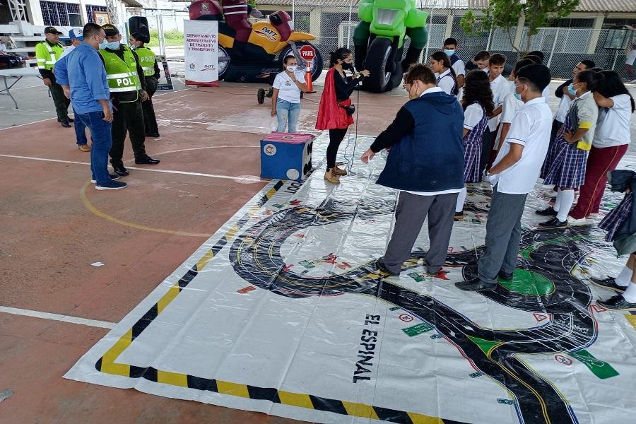 Con el fin de sensibilizar a toda la población, en especial a los niños y adolescentes de la Institución Educativa Rafael Uribe Uribe de El Espinal, el equipo de seguridad vial del DATT y la ARL Positiva realizaron una jornada pedagógica con cerca de 250 alumnos del plantel.