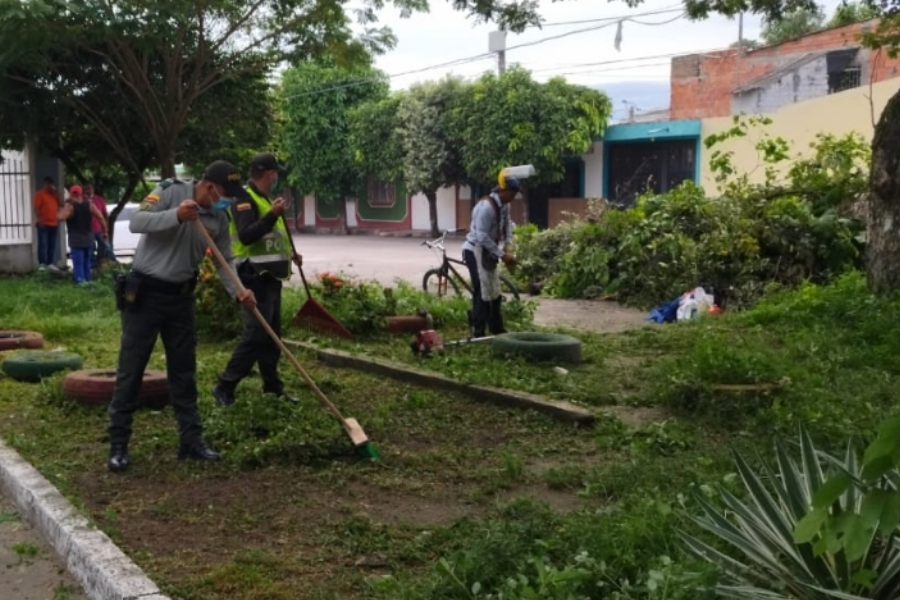 En medio de actividades de acercamiento a las comunidades vulnerables y en desarrollo del proyecto SUMA, voces y acciones para la convivencia, el departamento de Policía Tolima en cabeza del coronel Néstor Raúl Cepeda Cifuentes y bajo el liderazgo de la seccional de protección y servicios especiales de la institución, adelantaron una jornada de embellecimiento de un parque.