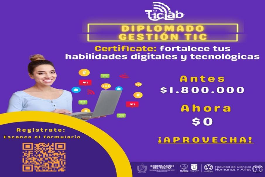 Sin intermediarios y de manera gratuita, la Dirección TIC en alianza con la Universidad del Tolima ofrece un diplomado virtual de 80 horas que apunta a la transformación digital, social y productiva en el departamento.