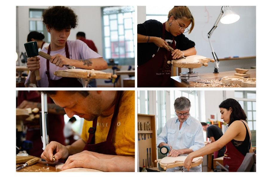 Bajo la guía del maestro lutier italiano Claudio Arezio, los estudiantes de la Tecnología en Construcción y Reparación de Instrumentos de Cuerda Frotada pudieron afianzar las técnicas de construcciones de violines basadas en la escuela italiana de lutería.