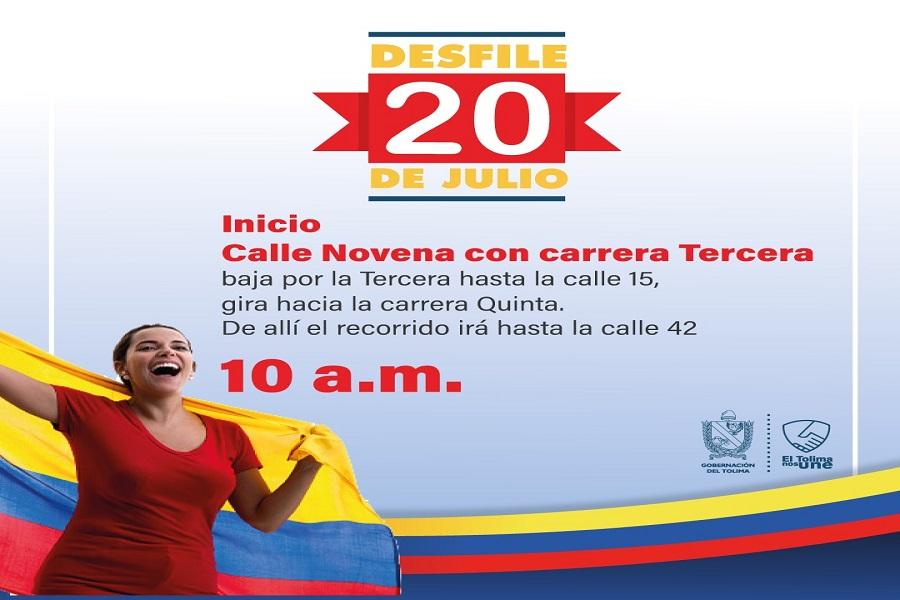 “Este desfile, al que esperamos asistan con toda la familia, arranca sobre las diez de la mañana frente a la Alcaldía de Ibagué. Se desplazará por la carrera Tercera hasta llegar a la calle 15, y girará a la izquierda para tomar la Quinta hasta llegar a la calle 42, donde finaliza”, puntualizó el secretario del Interior (e) Juan Pablo García Poveda.