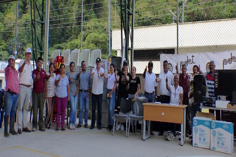 En el marco de este proyecto PDET, que tuvo una inversión de $90 millones, los habitantes de la vereda Virgina Alta y La Marina, recibieron equipos de oficina, silletería, menaje, herramientas audiovisuales, kit de primeros auxilios y otros elementos para dotar y equipar los salones comunales de estos dos sectores, espacios donde se reúnen habitantes de más de 36 veredas de la región.