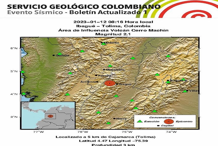 En las últimas horas, el Servicio Geológico Colombiano reportó un nuevo sismo en el área de influencia del Volcán Cerro Machín, zona rural de Ibagué.
