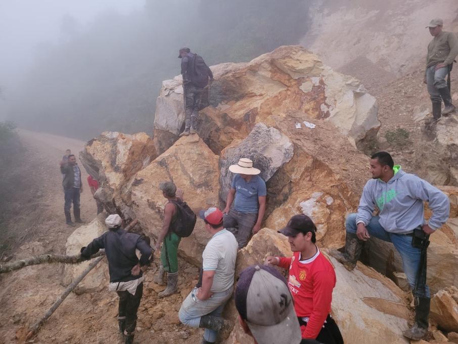 En la vía Llanitos - San Pedro, veredas del municipio de Dolores, tolima hay una remisión de roca y tierra dejando este sector incomunicado con la vía principal, en las imágenes se puede observar el tamaño de las rocas que obstaculizan la vía.